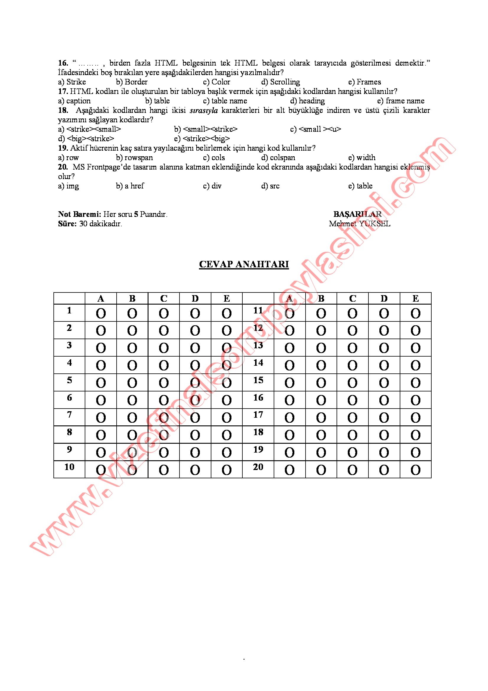 Temel Bilgi Teknolojileri Final Soruları 26-03-2015, 07:19