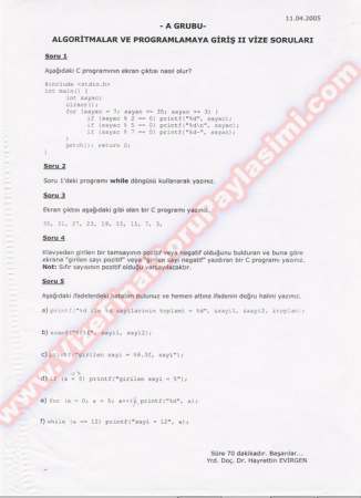 Bilgisayar Programlama Vize Soruları 25-03-2015, 23:42