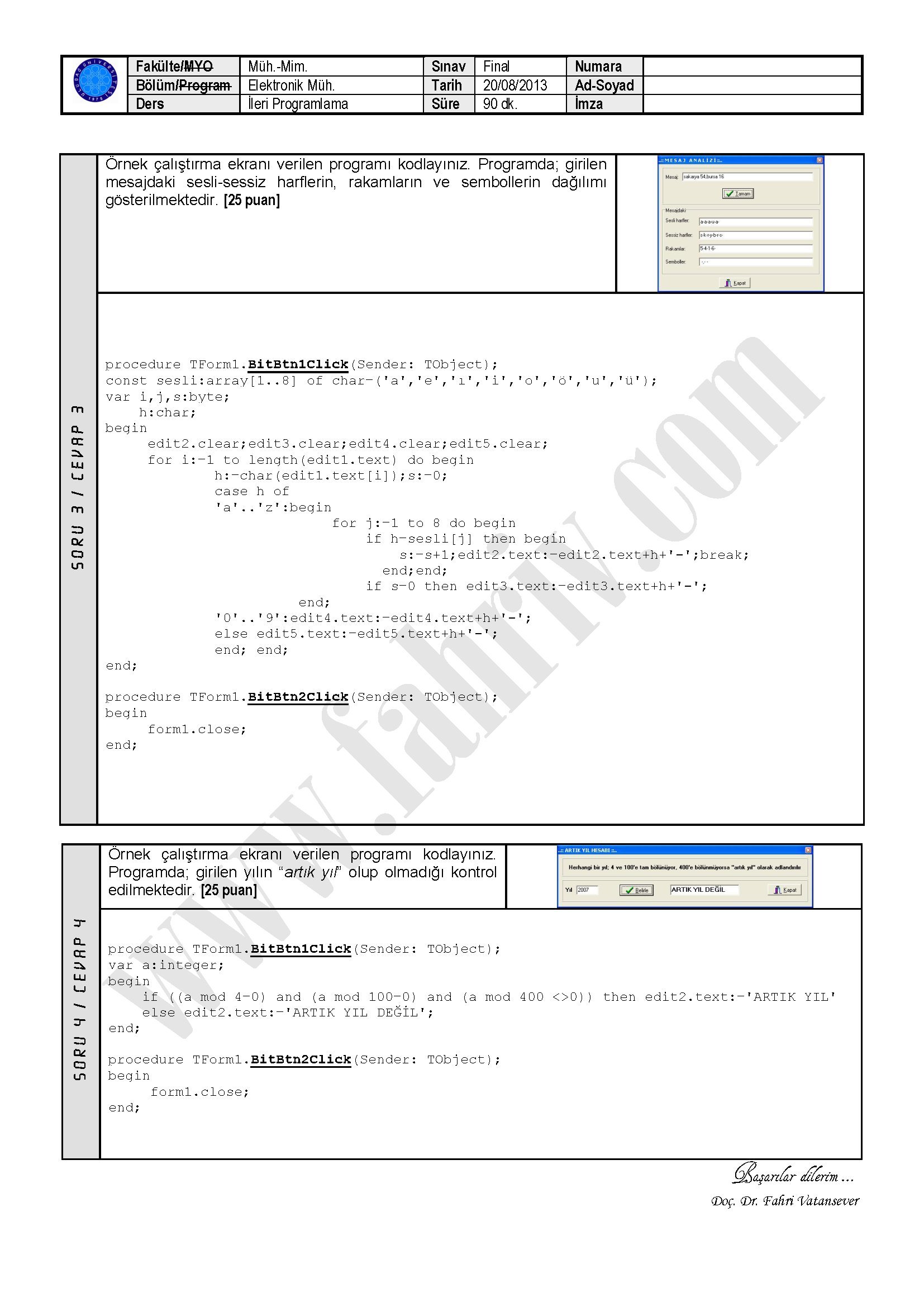Algoritma Ve Programlama Bütünleme Soruları Ve Cevapları-2013 10-03-2015, 11:58