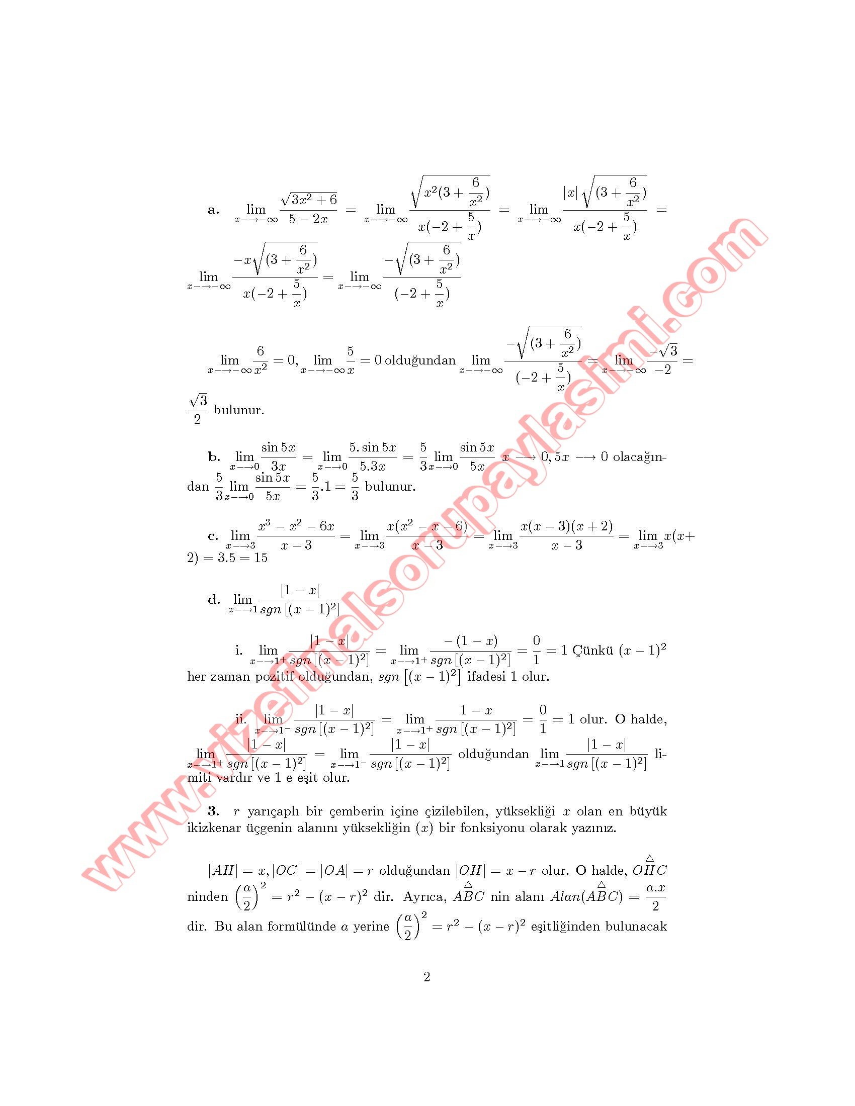 Vize ve Final Soruları / Süleyman Demirel Üniversitesi / Matematik-1