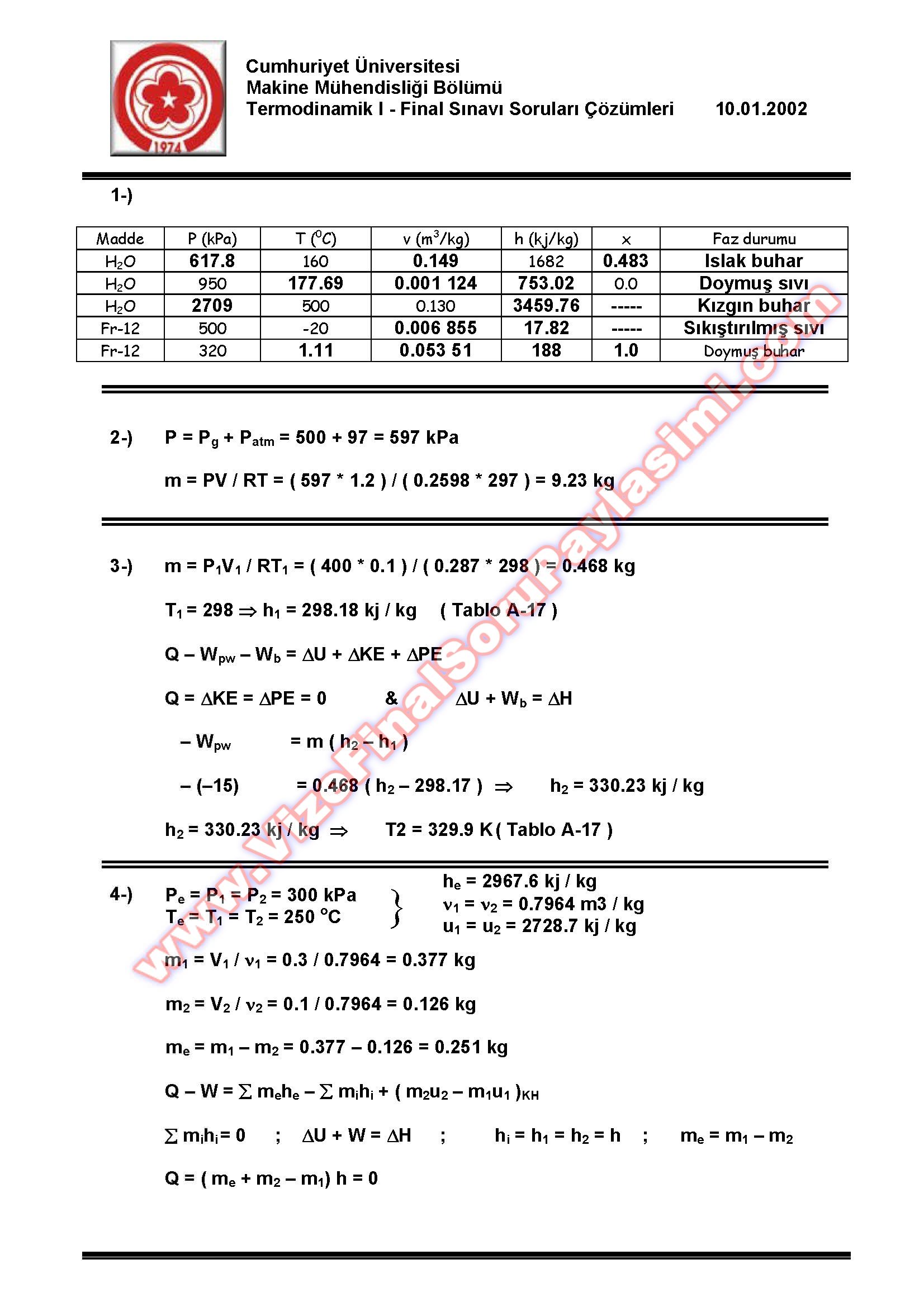 Cumhuriyet Üniversitesi Termodinamik-1 Vize Soruları-2 17-07-2014, 13:49