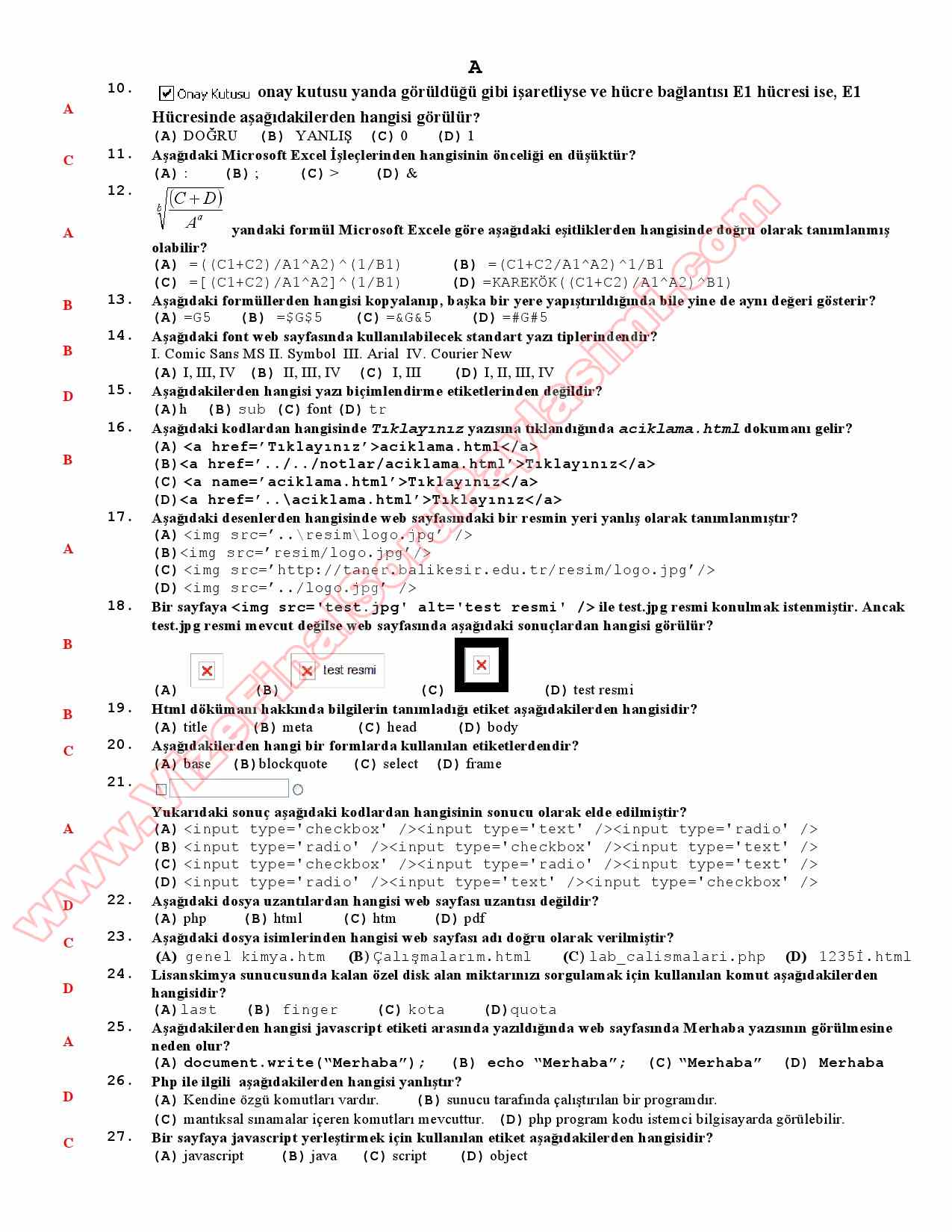 Vize ve Final Soruları / Balıkesir Üniversitesi / Kimyacılar İçin Bilgisayar Dersi