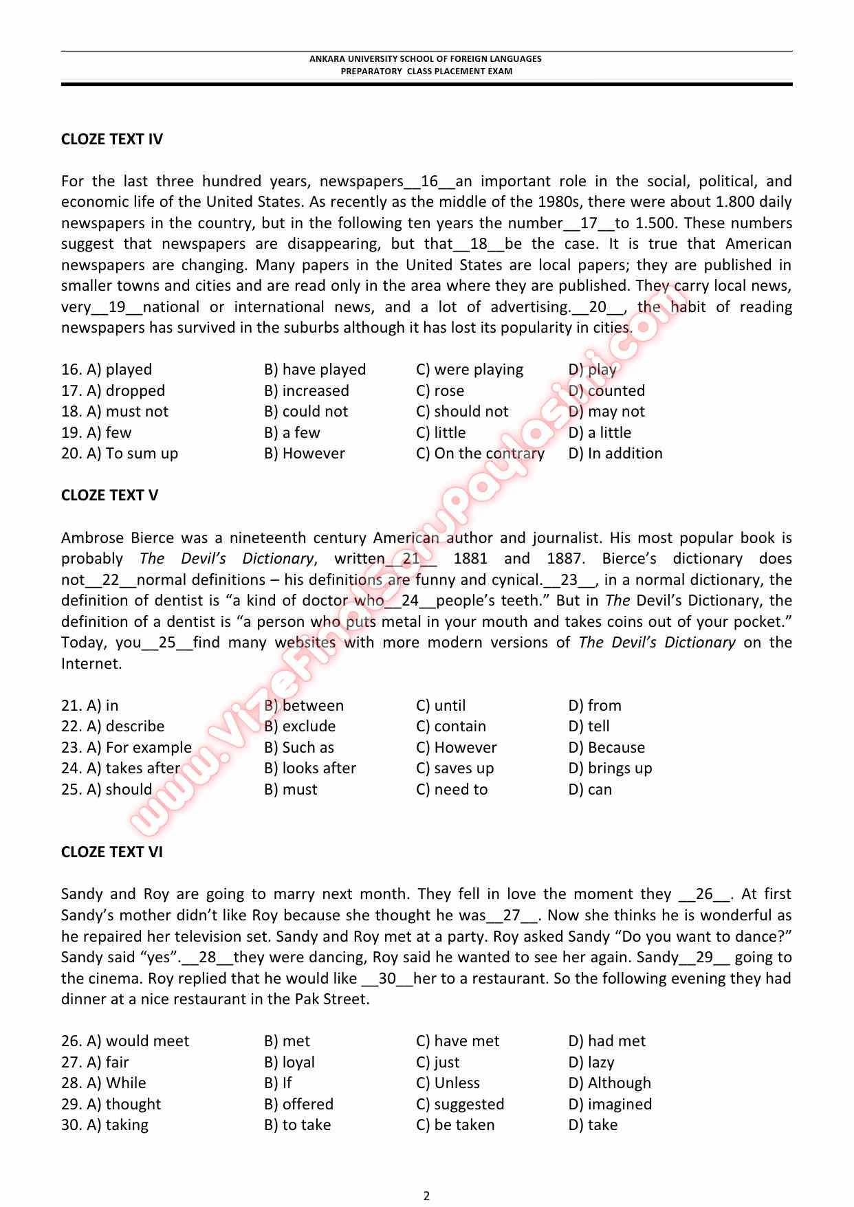 Ankara Üniversitesi İngilizce Muafiyet Soruları Ve Cevapları -2