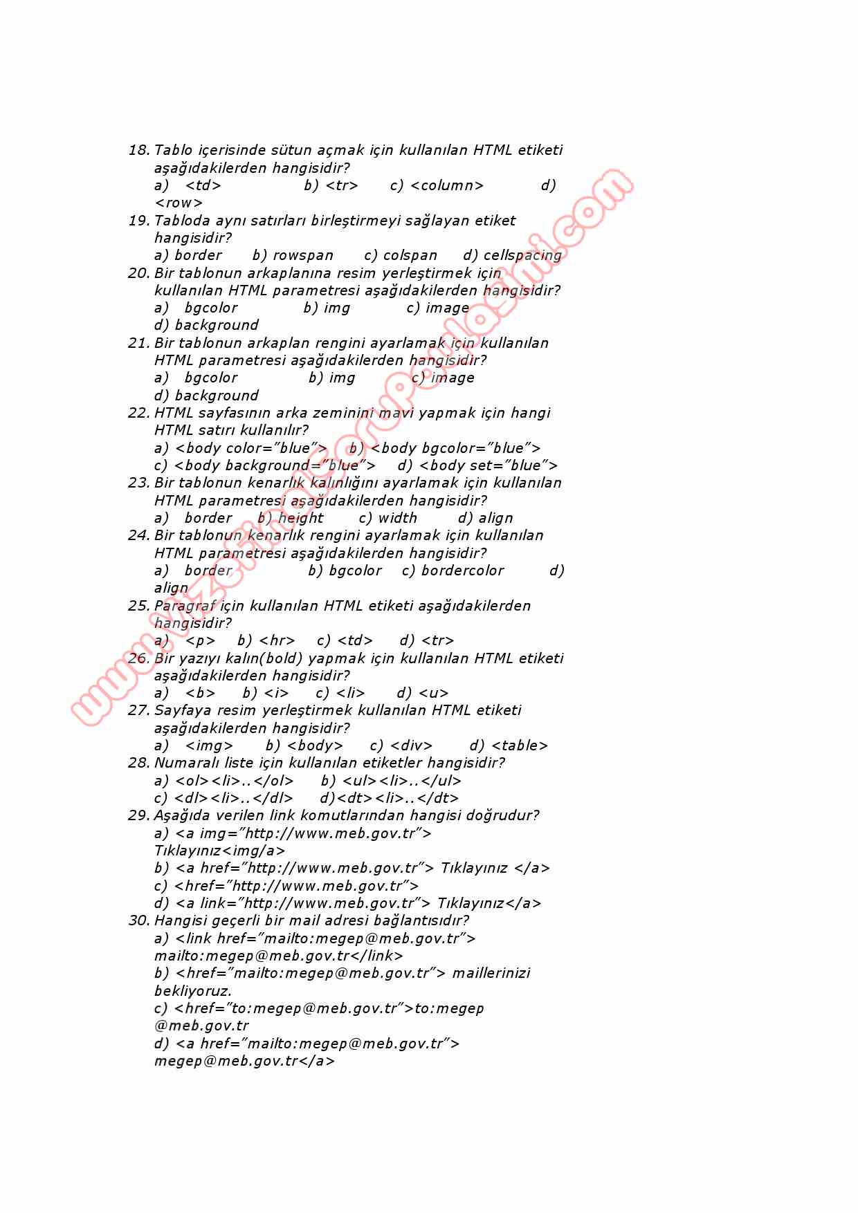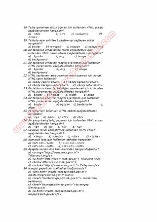 İnternet Programcılığı -1 Test Soruları 31-07-2015, 23:23