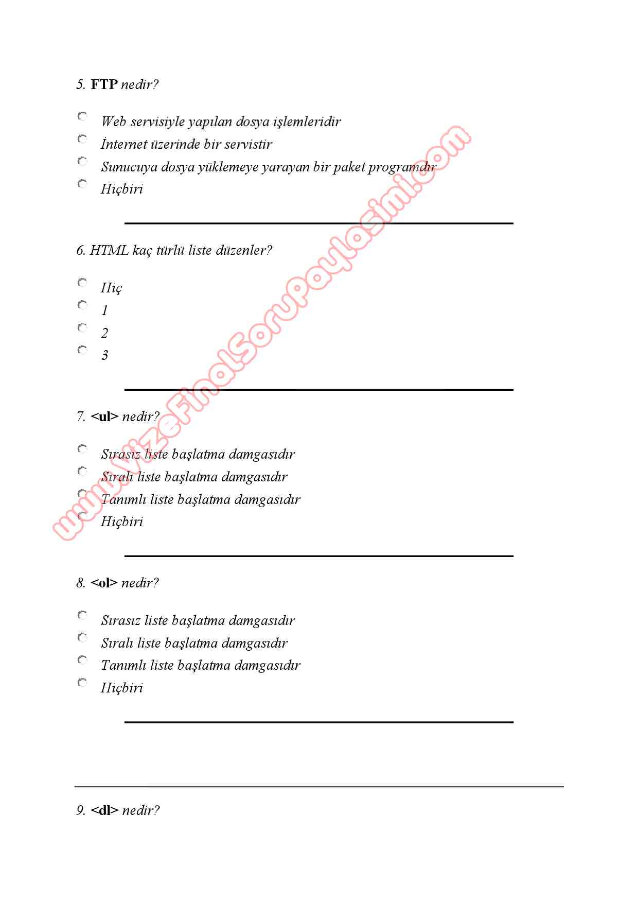 İnternet Programcılığı -1 Test Soruları 31-07-2015, 23:23