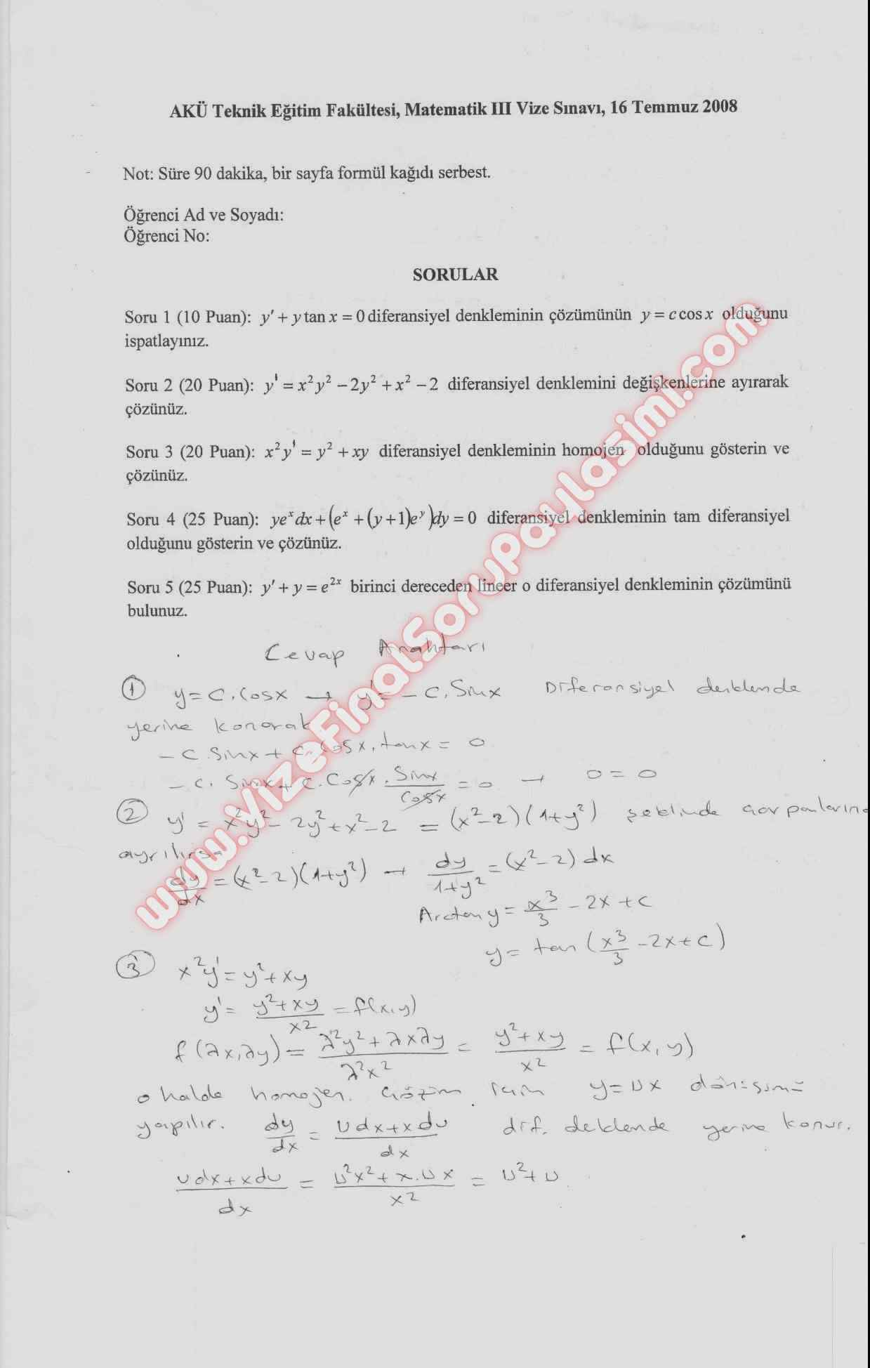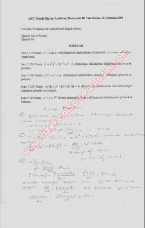 Matematik 3 Yaz Okulu Vize Soruları -2008