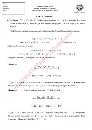 Sayısal Yöntemler Dersi Vize Soruları ve Cevapları 29-06-2015, 22:27