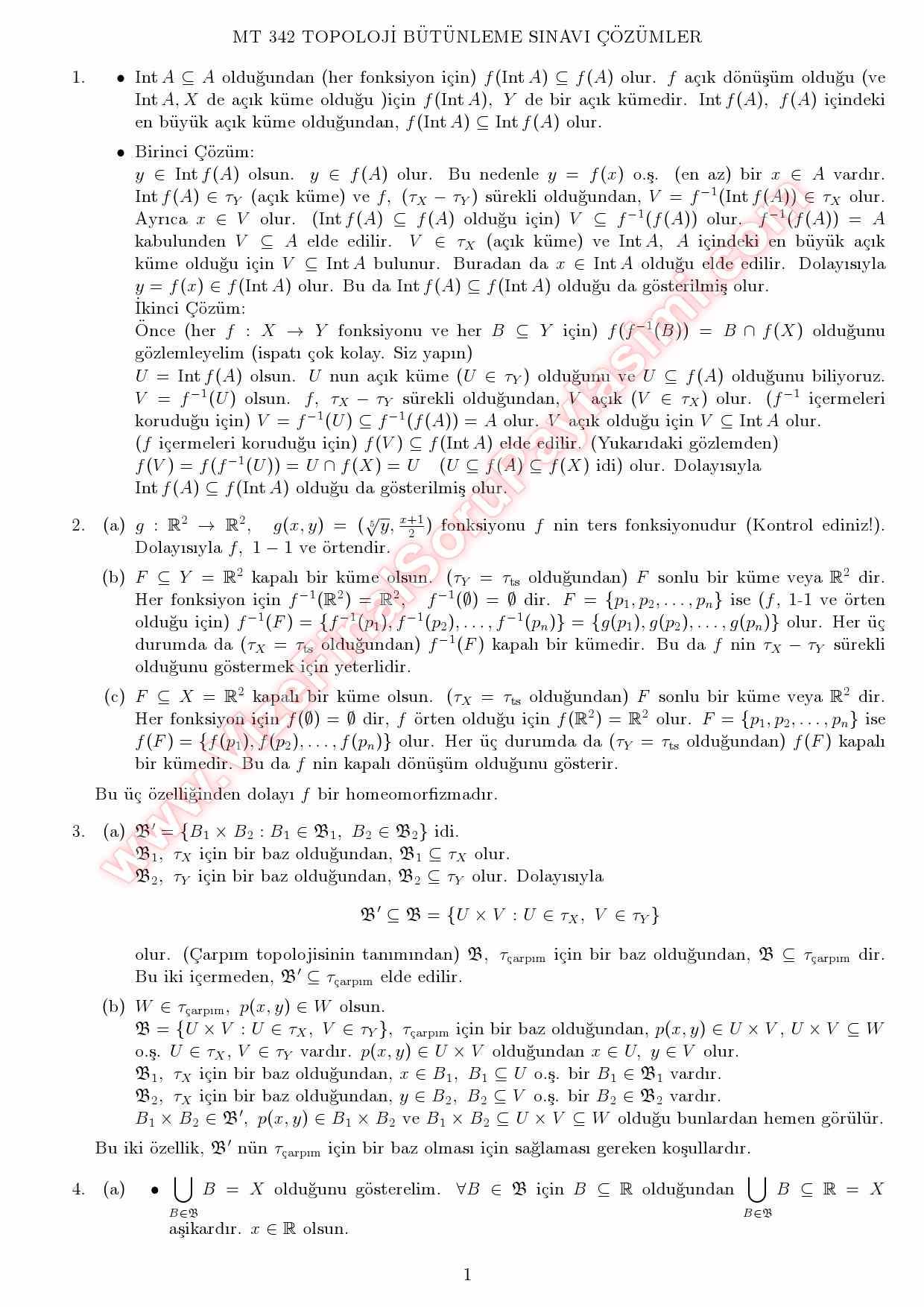 topoloji butunleme sorulari cozumleri 2014