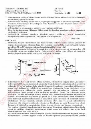 Vize ve Final Soruları / Yıldız Teknik Üniversitesi / Isıl İşlemler Dersi