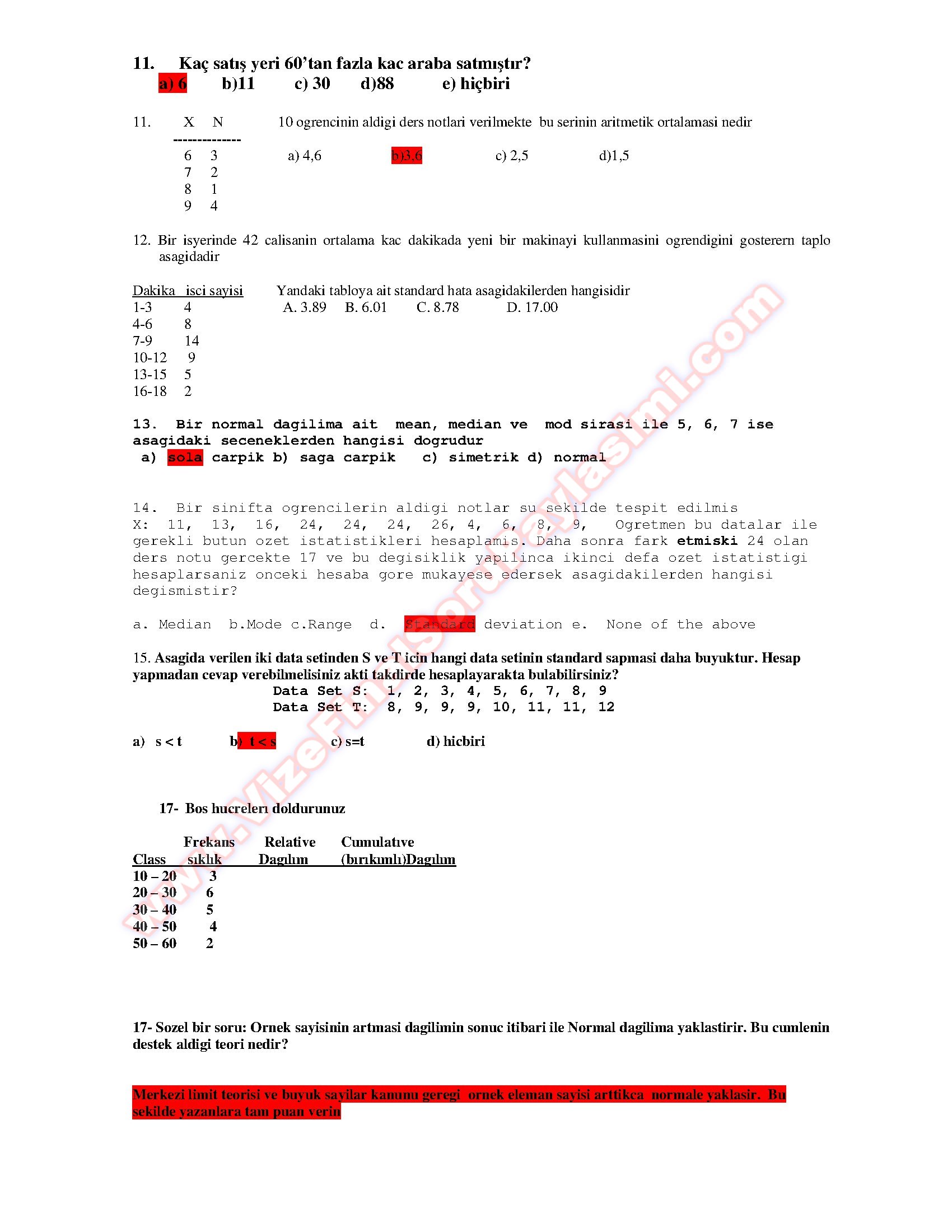 istatislik Dersi Vize Soruları 22-09-2014, 23:59