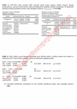 Vize ve Final Soruları / Dokuz Eylül Üniversitesi / Ekonometri -2