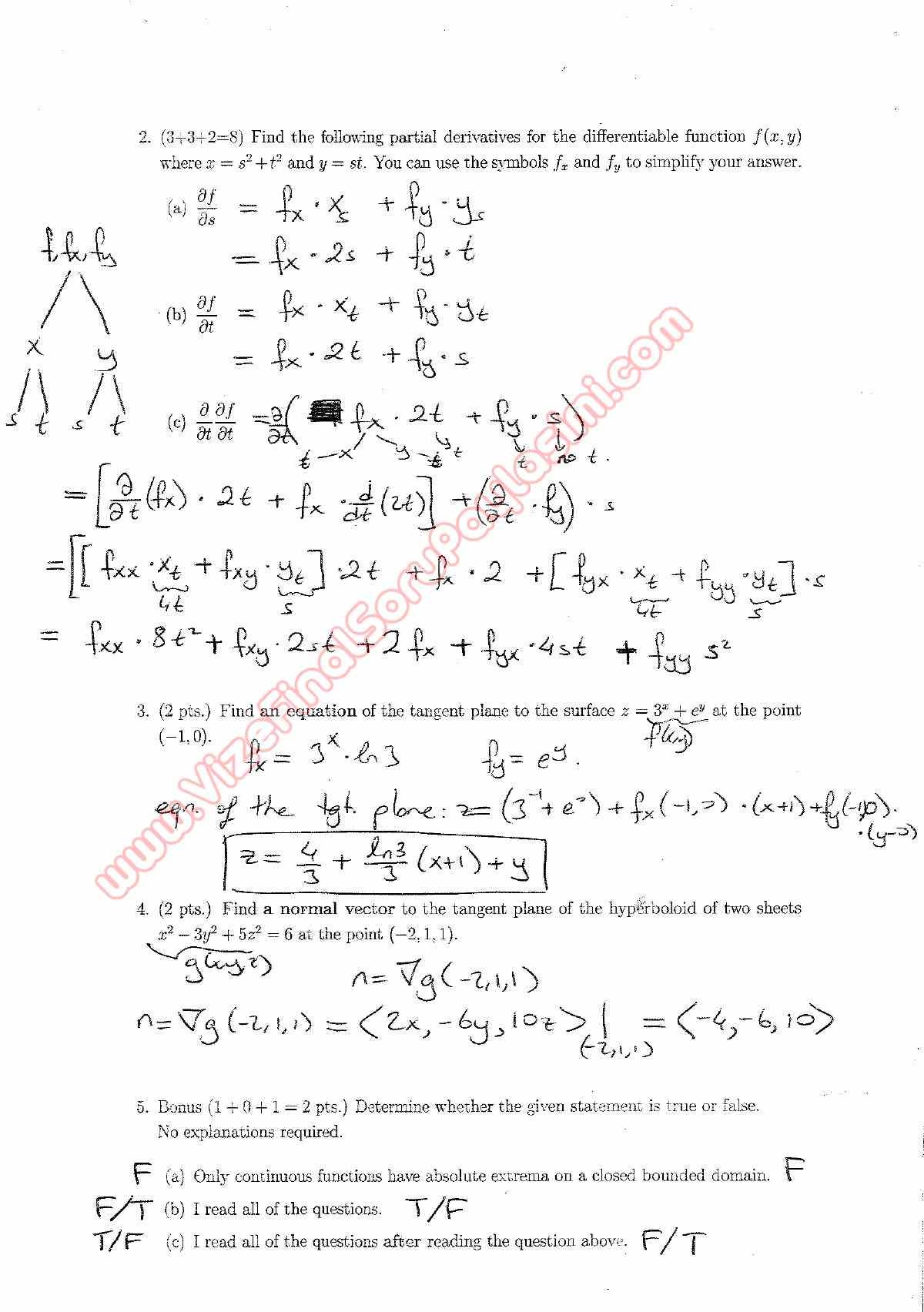 Calculus For Functions Of Several Variables Second Short Exam Questions And Solutions Spring 2013 9-11-2015, 00:25