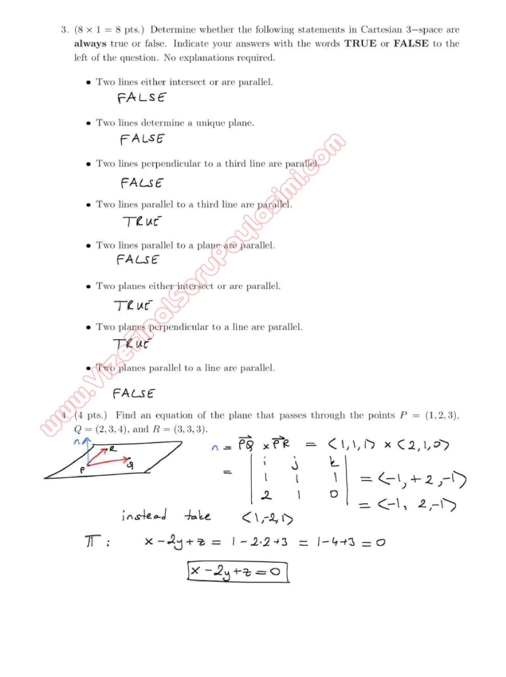 Calculus For Functions Of Several Variables First Short Exam Questions And Solutions Spring 2013 9-11-2015, 00:21