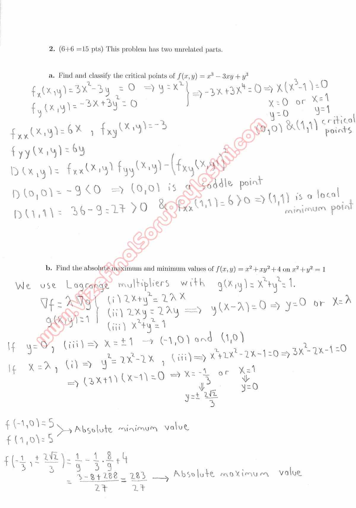 Calculus For Functions Of Several Variables Second Midterm Exam Questions And Solutions Spring 2012 9-11-2015, 00:14