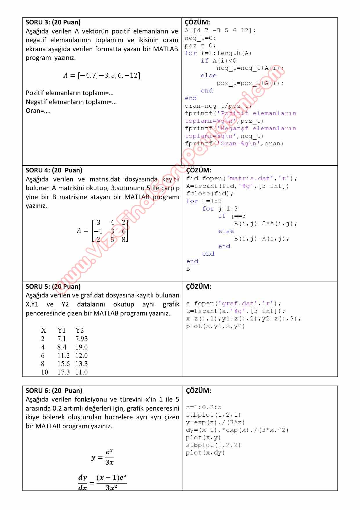 bilgisayar programlama matlab vize-2 soru cevap atauni