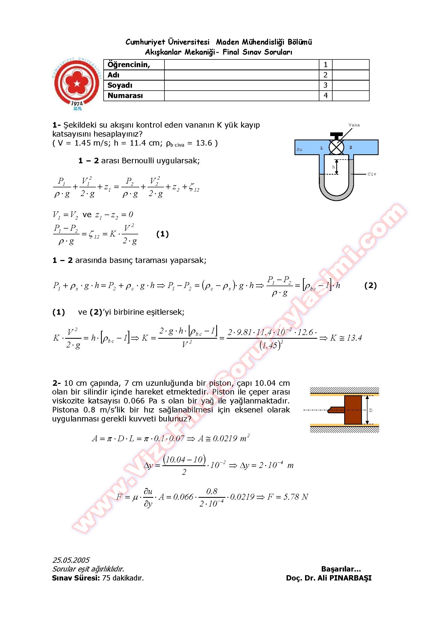 Akışkanlar Mekaniği Vize Soruları - 2005 20-09-2014, 12:59