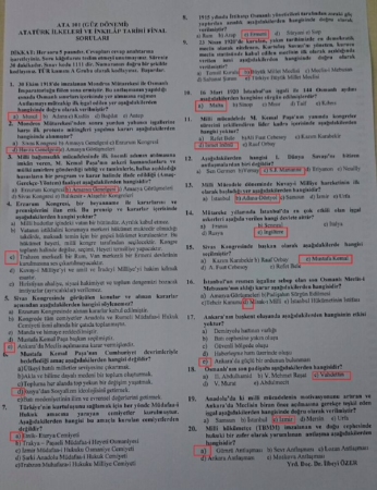 Vize ve Final Soruları / Süleyman Demirel Üniversitesi / Atatürk İlkeleri ve İnkılâp Tarihi -1
