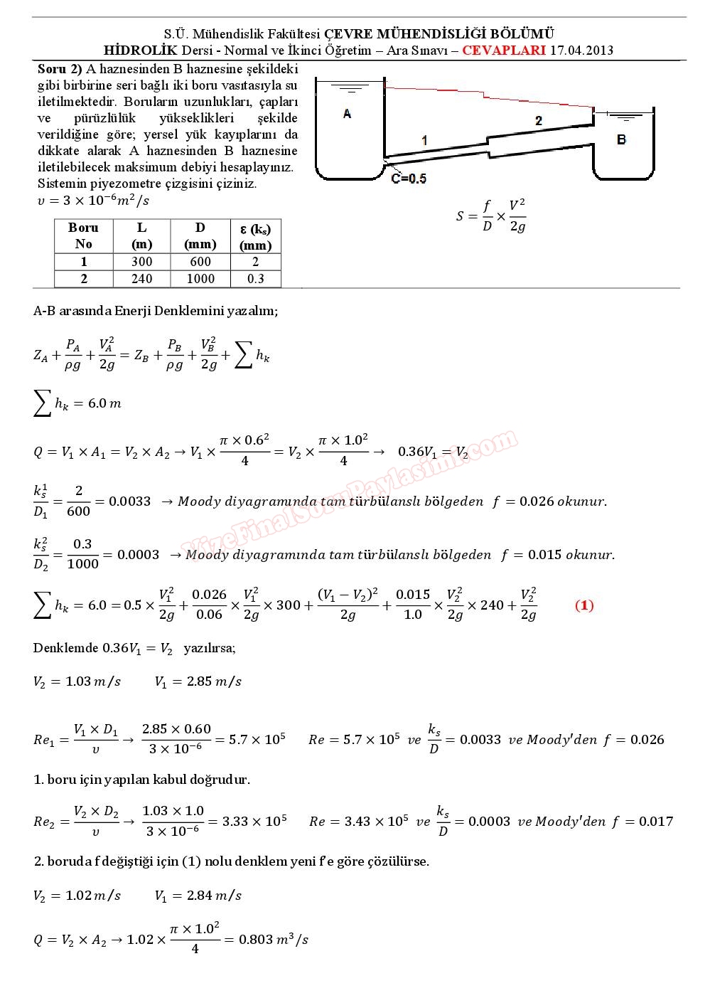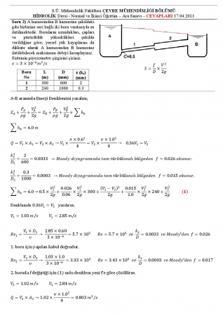 Hidrolik Dersi Vize Soru ve Cevapları 2013
