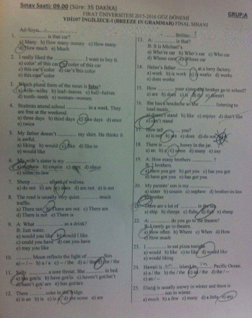 İngilizce 1 Final Soruları - 2014 2-11-2015, 23:41