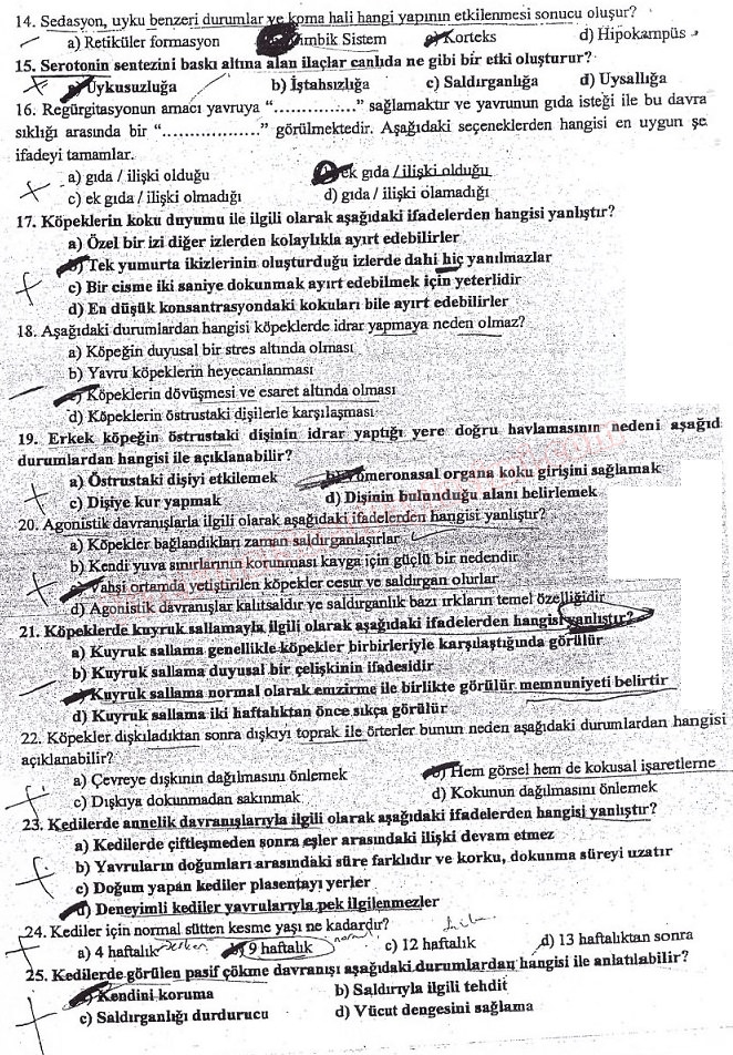 Vize ve Final Soruları / Fırat Üniversitesi / Hayvan Davranışları Dersi