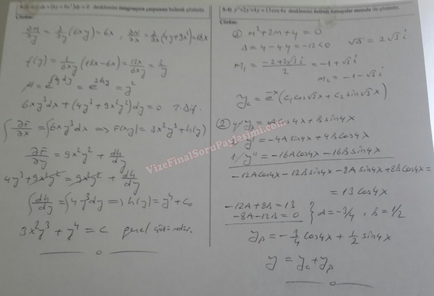 Vize ve Final Soruları / Fırat Üniversitesi / Diferansiyel Denklemler