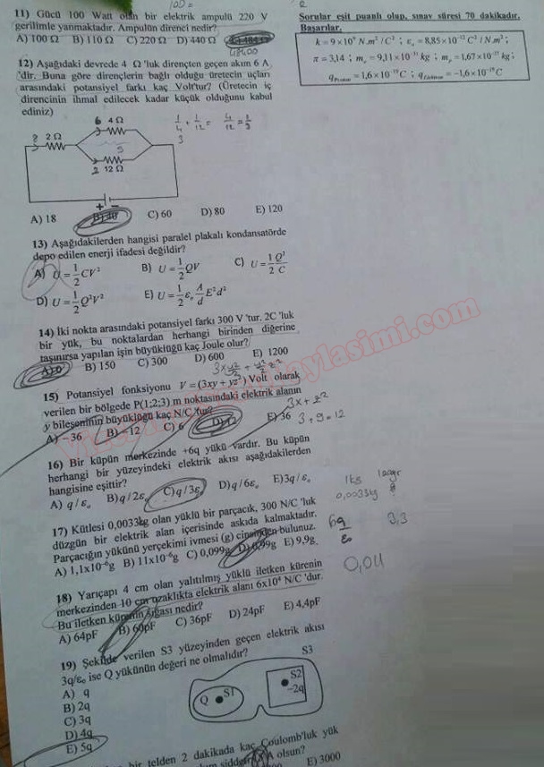 Arkadaşlar fizik final soruları 9,10 ve 20. soruları çözemedim görünmüyorlardı. Birde bir kaç tane çözemediğim var onları yazdım siz çözersiniz veya bir başkasına çözümünü yaptırırsınız. Şimdiden başarılar.