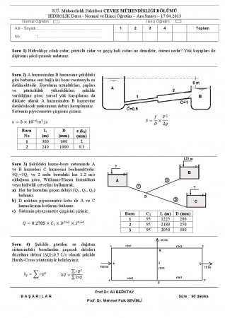 Hidrolik Dersi Final Soruları - KKÜ 24-04-2016, 13:35