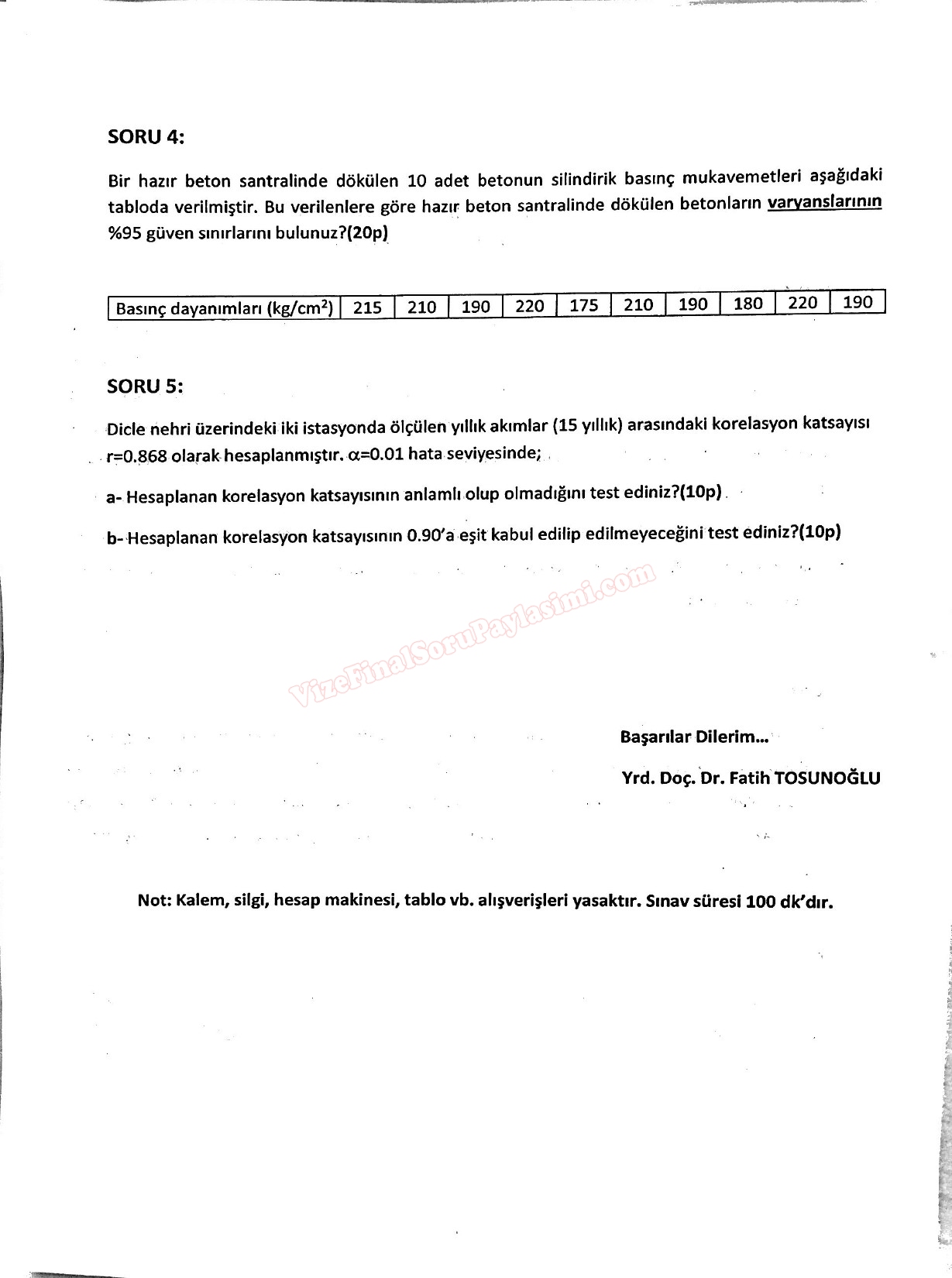 Olasılık ve İstatistik Vize Soruları 28-11-2016, 16:00