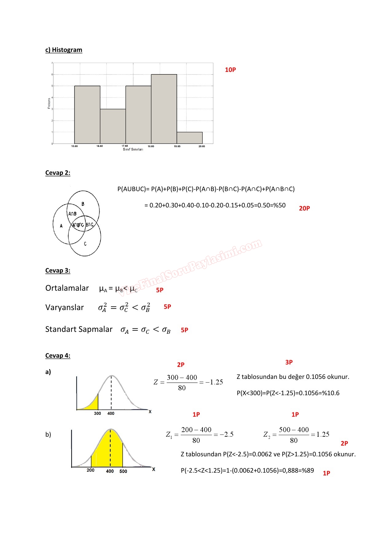 İstatistik ve Olasılık Final Soruları ve Cevapları 11-11-2015, 15:04