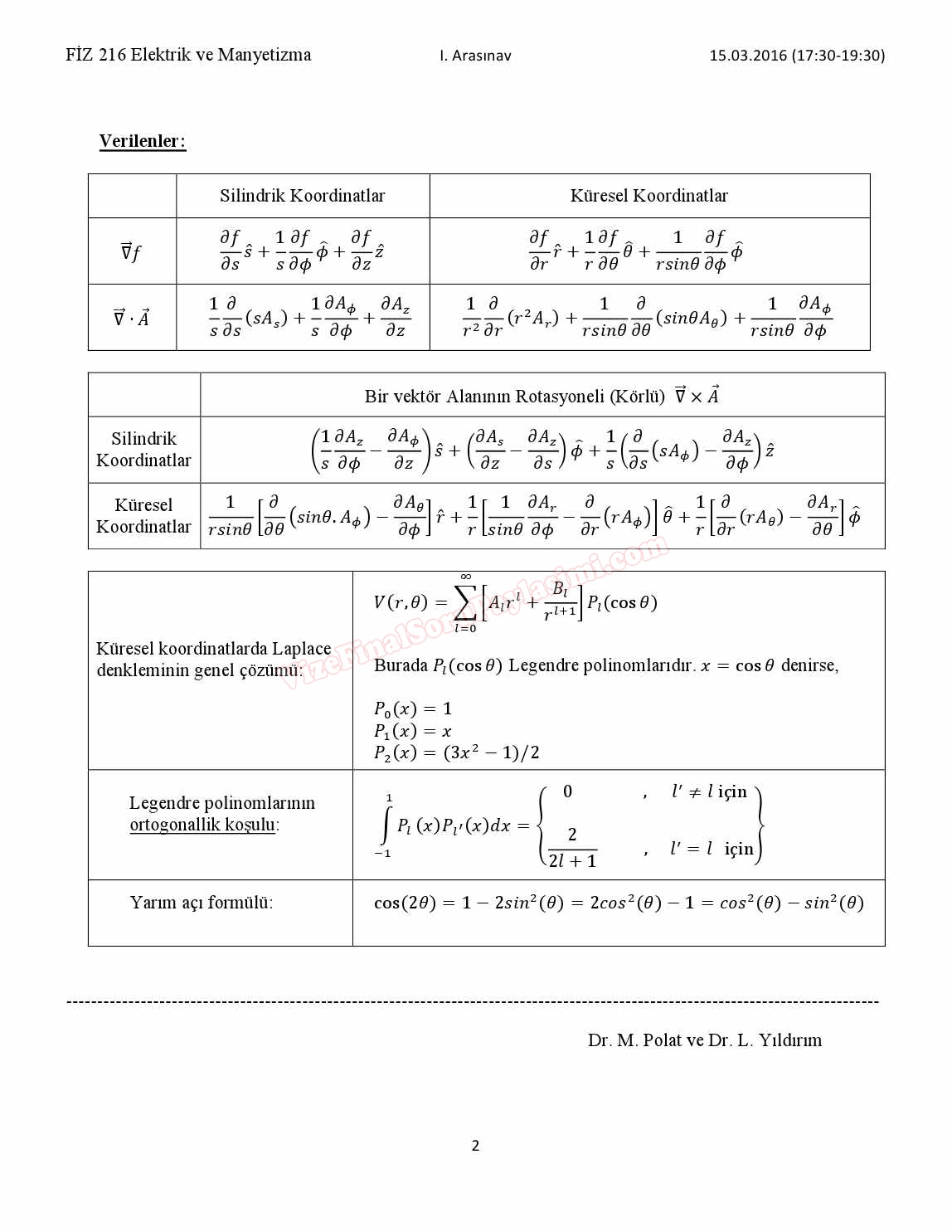 Elektrik ve Manyetizma 2. Vize Soruları ve Cevapları 6-12-2016, 01:54