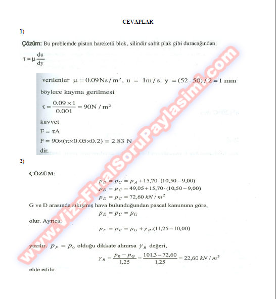 Akışkanlar Mekaniği 2. Vize Soruları ve Çözümleri 19-10-2014, 00:10