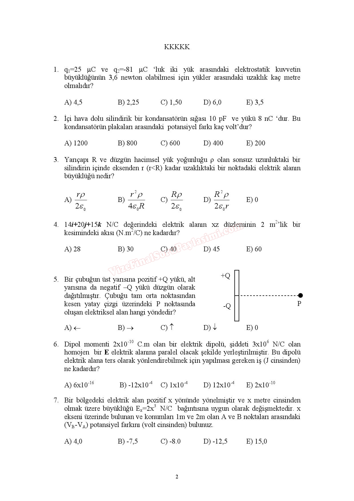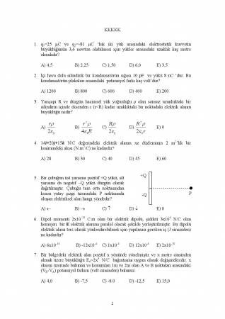 Vize ve Final Soruları / Düzce Üniversitesi / Fizik -2