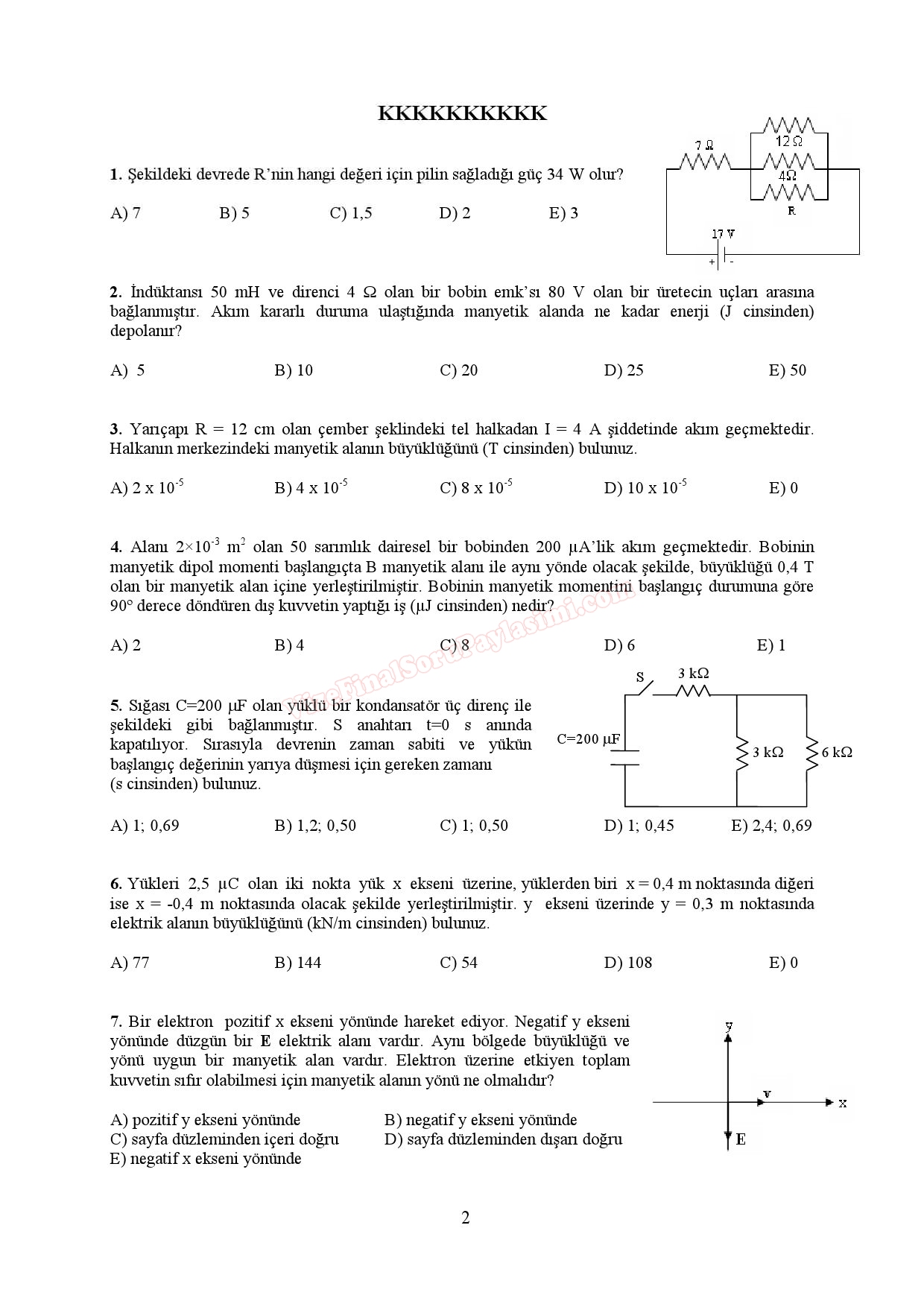 Fizik -2 Genel Sınav Soruları 10-06-2017, 16:34