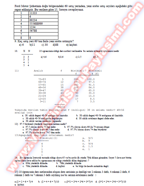 İstatistik 2 Vize Soruları-2005 4-11-2014, 13:36