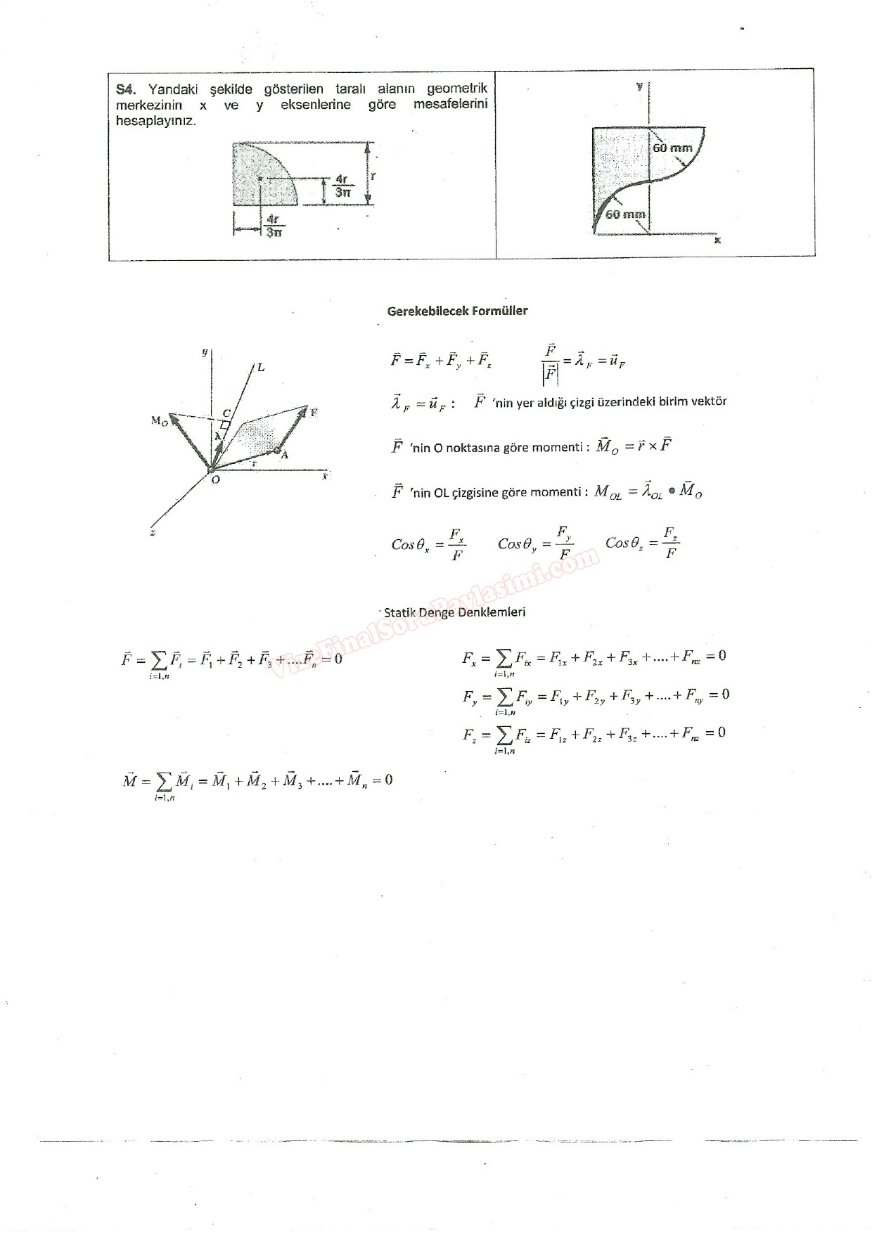 Statik Dersi Final Soruları ve Cevapları Vize Soruları ve Cevapları Süleyman Demirel Üniversitesi SDÜ 2016