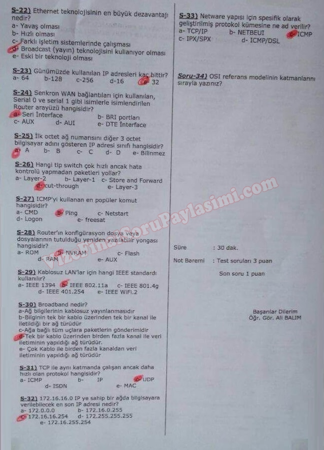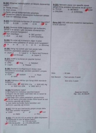 Vize ve Final Soruları / Süleyman Demirel Üniversitesi / Bilgisayar Ağ Sistemleri Dersi