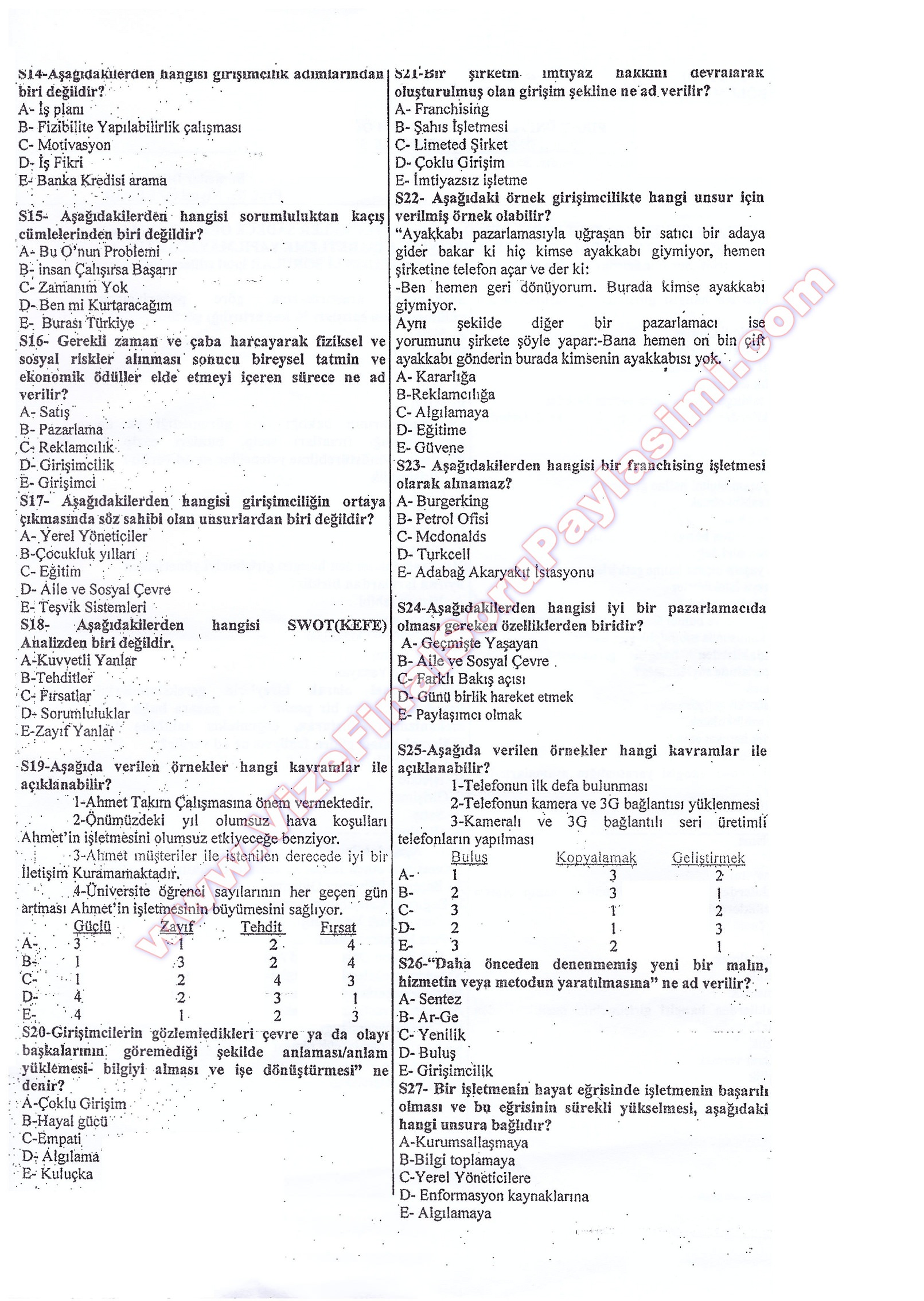 Fırat Üniversitesi Girişimcilik-2 Final Soruları (2014) 11-06-2014, 15:25
