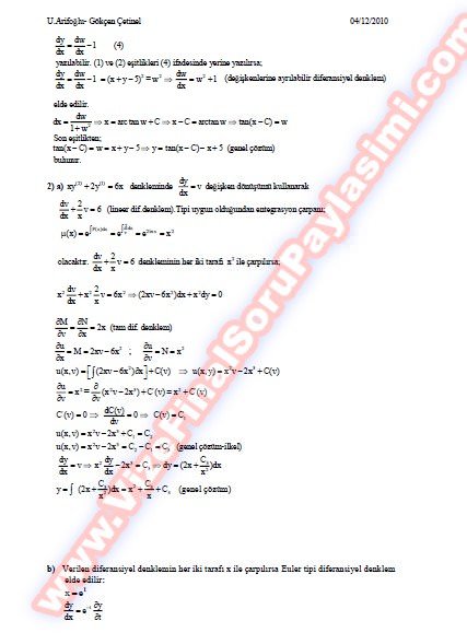 Diferansiyel Denklemler Vize Soruları Ve Cevapları-2010