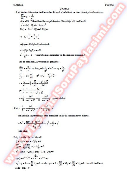 Diferansiyel Denklemler Vize Soruları Ve Cevapları-2010 12-12-2014, 15:17