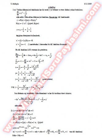 Diferansiyel Denklemler Yaz Okulu Vize Soruları Ve Cevapları-2009 12-12-2014, 15:27