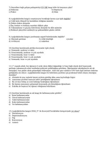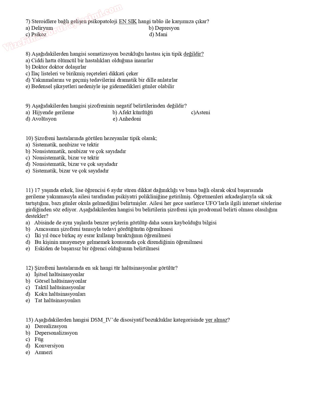Vize ve Final Soruları / İstanbul Üniversitesi / Psikiyatri Sınav Soruları