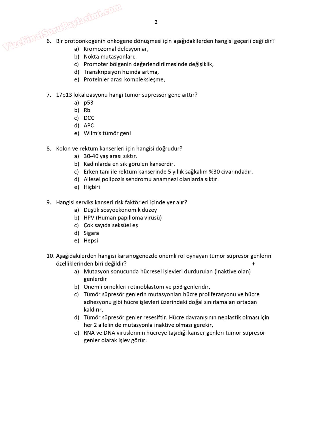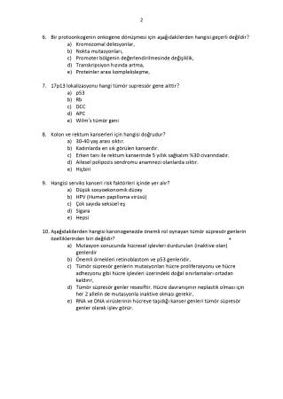 Vize ve Final Soruları / İstanbul Üniversitesi / Radyasyon Onkolojisi Sınav Soruları