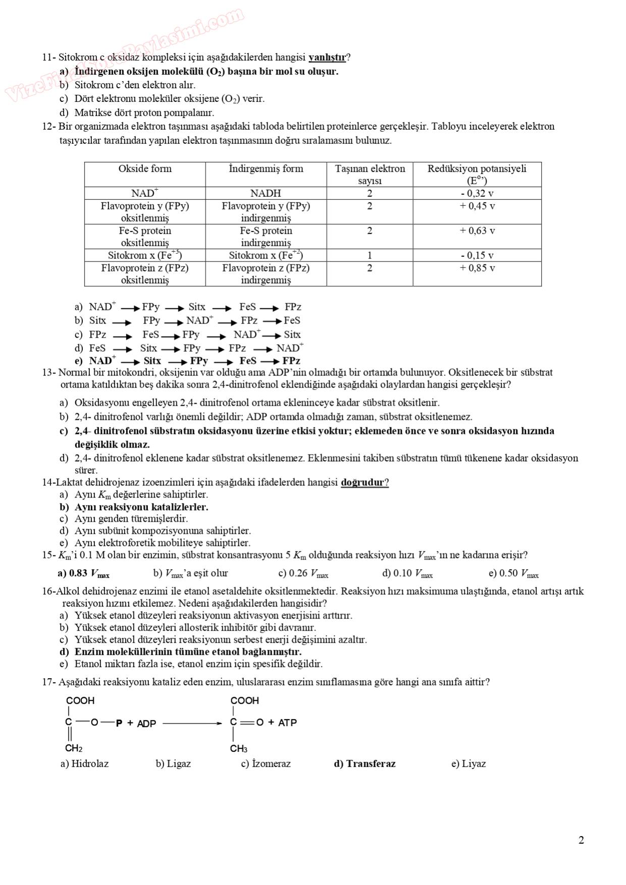 Vize ve Final Soruları / İstanbul Üniversitesi / Temel Biyokimya Sınav Soruları