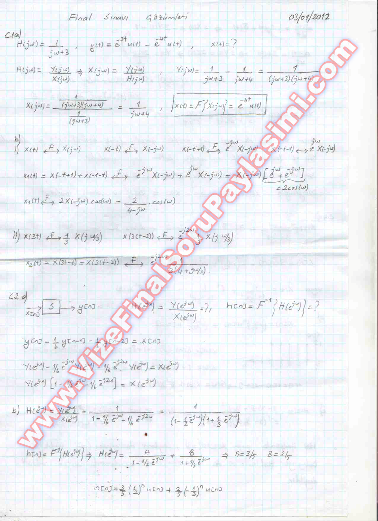 İşaret Ve Sistemler Final Soruları Ve Cevapları-2011