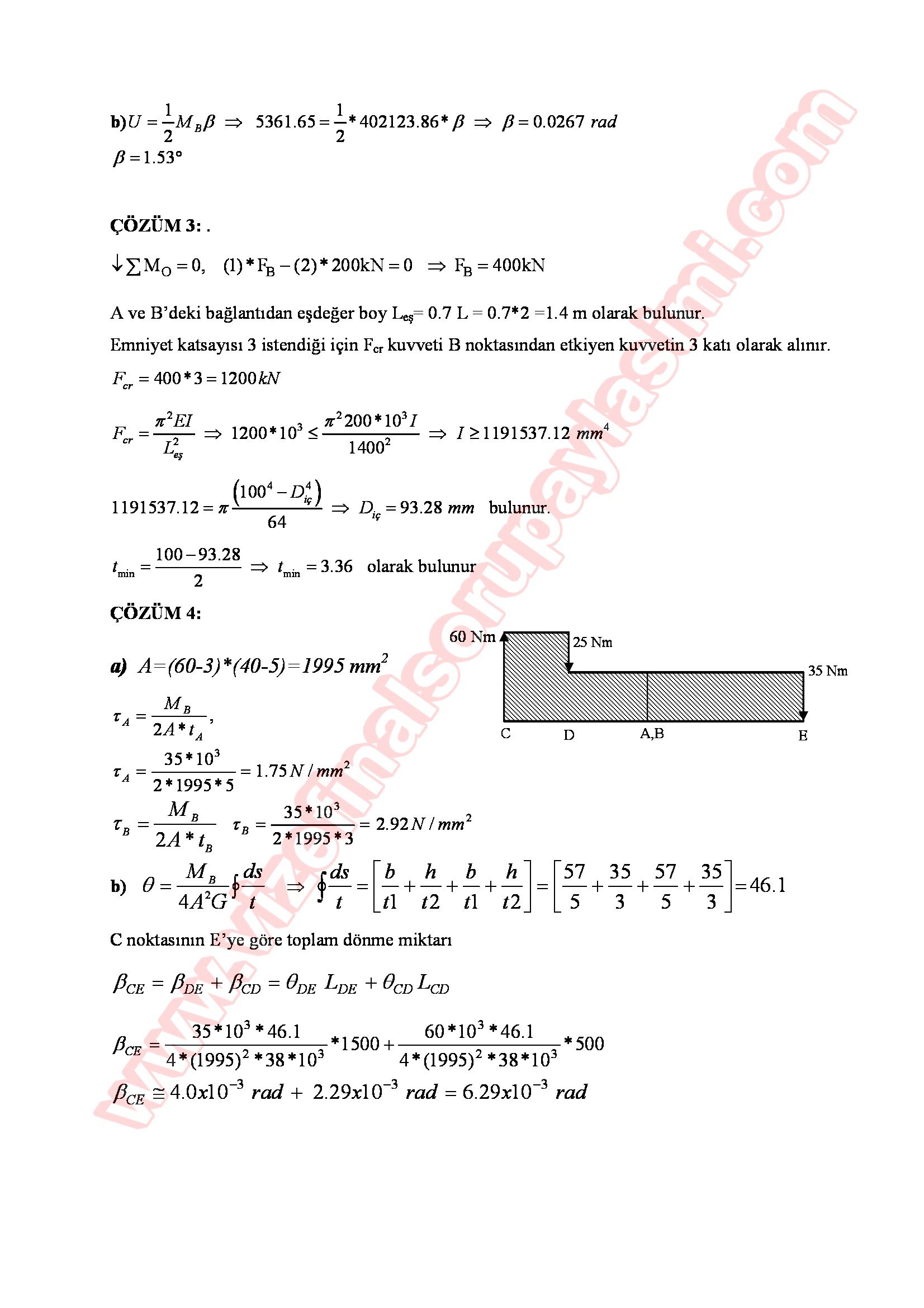 Mukavemet-2 Bütünleme Soruları Ve Cevapları-2009