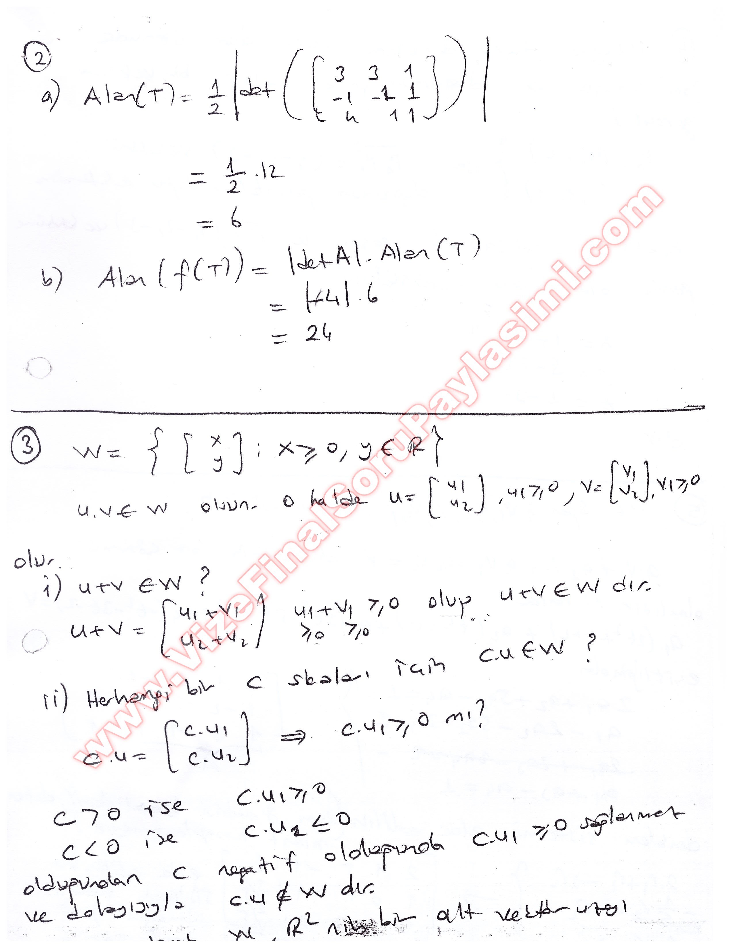 Vize ve Final Soruları / Tunceli Üniversitesi / Lineer Cebir Dersi