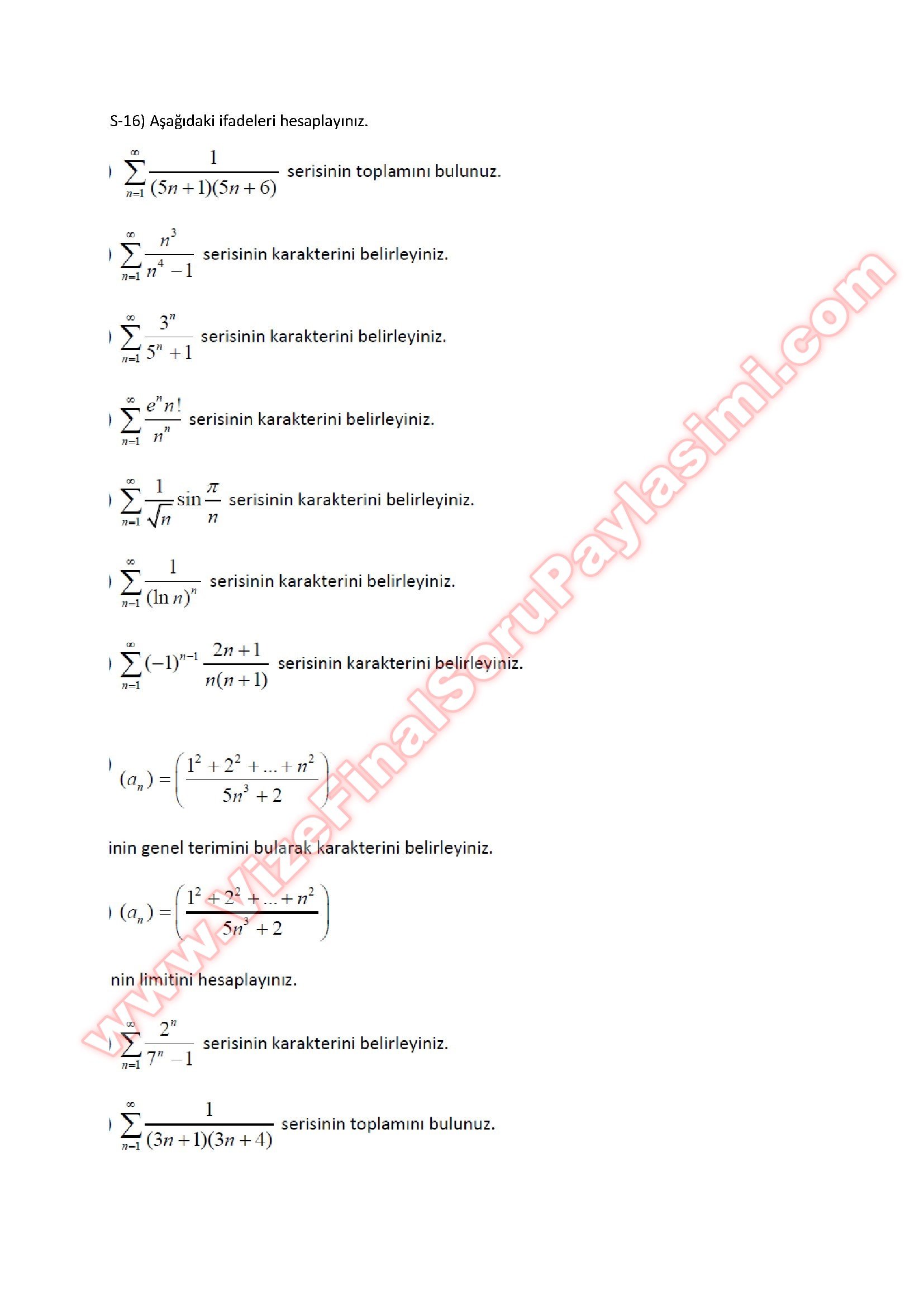 Matematik -3 Çalışma Soruları 29-03-2015, 02:40
