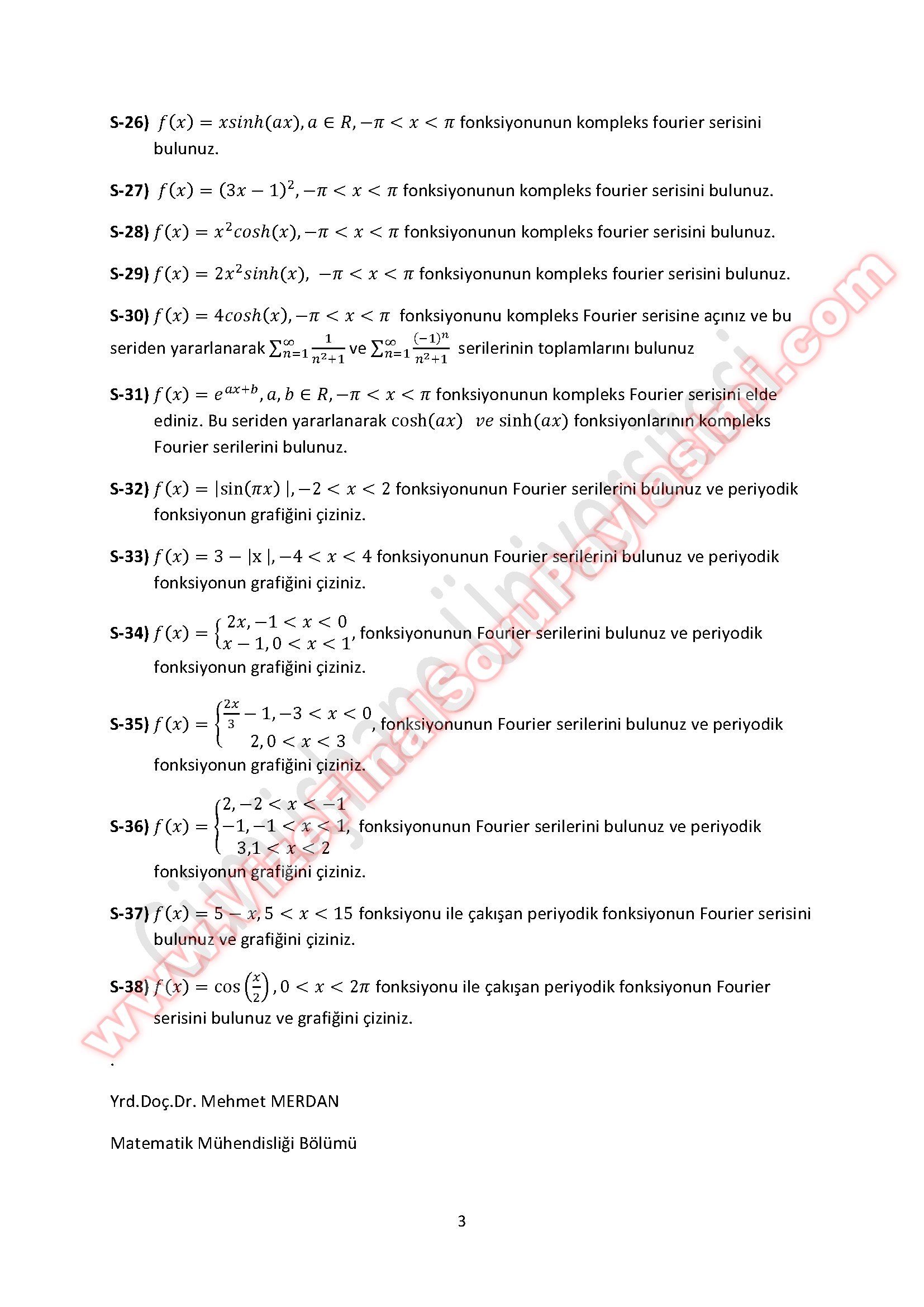 Fourier Analizi Final Çalışma Soruları 29-03-2015, 04:46