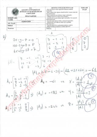 Vize ve Final Soruları / Sakarya Üniversitesi / İktisadi Matematik