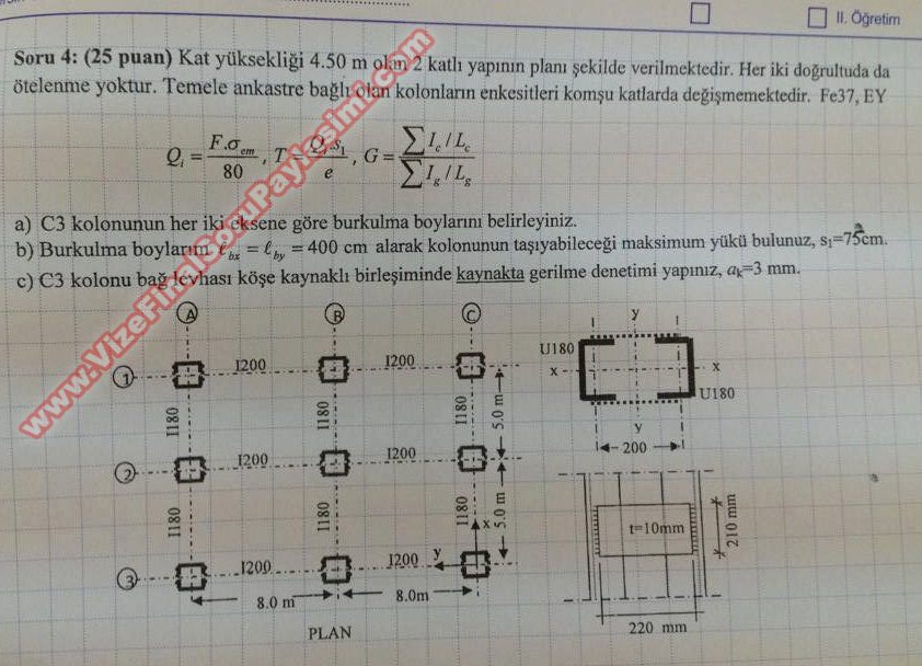 Vize ve Final Soruları / Karadeniz Teknik Üniversitesi / Çelik Yapılar Dersi